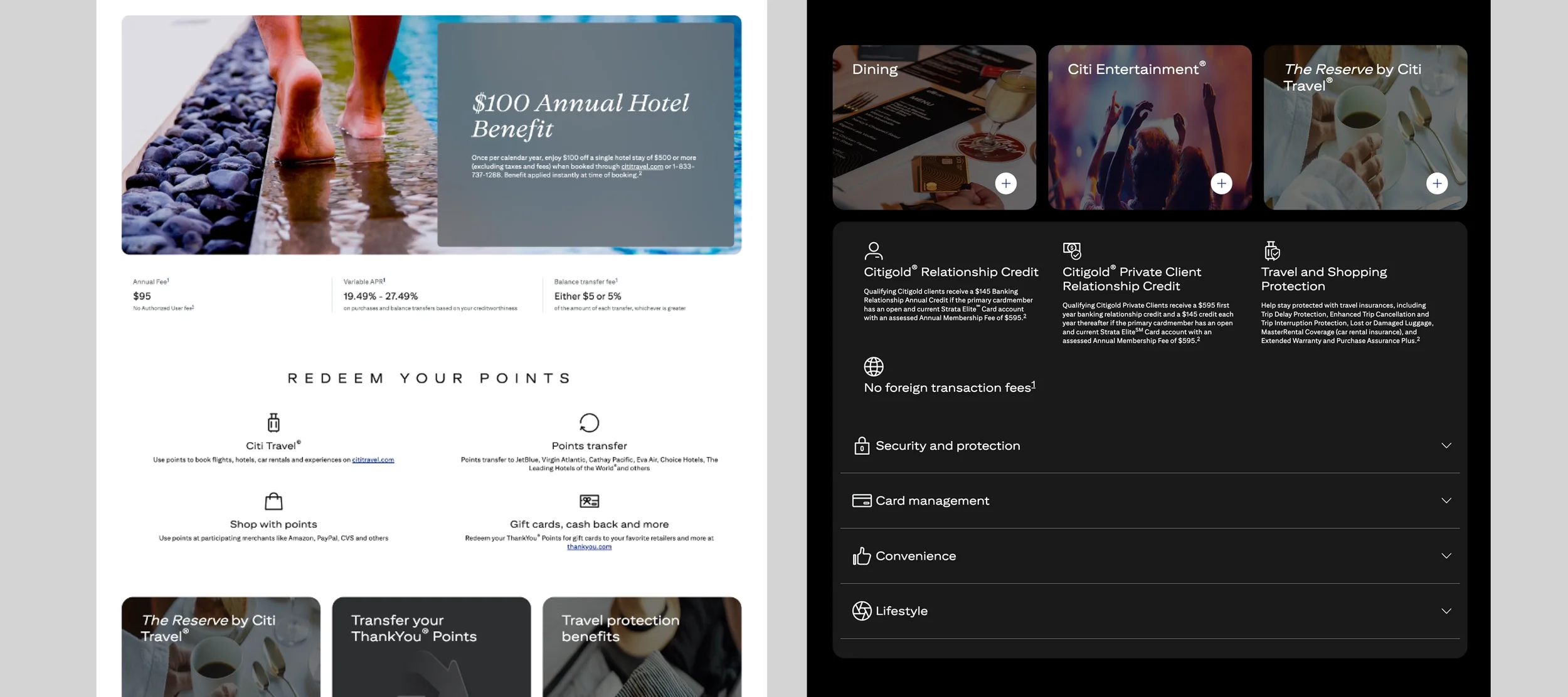 As a Senior UI Designer, I played a key role in shaping the digital experience for Citi’s Strata card portfolio, translating complex financial products into clear, intuitive, and engaging interfaces. I partnered closely with product, UX, and engineering teams to define scalable design patterns, elevate visual consistency, and ensure a seamless experience across web and mobile touchpoints. My involvement focused on simplifying decision-making for users, highlighting card benefits effectively, and aligning the experience with Citi’s broader design system while pushing for a more modern, user-centered approach.